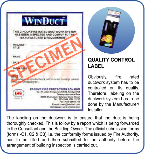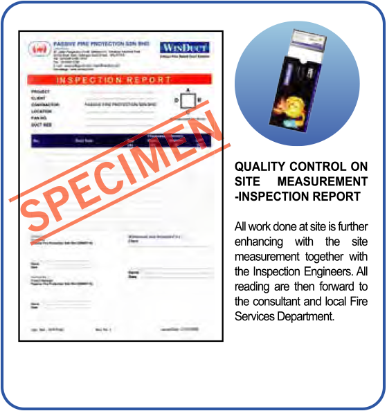 Afer the installation of the WinDuct® system, representative of Passive Fire Protection Sdn Bhd and clients will conduct the completed fire rated ductwork inspection, in respect of G.I. Ductwork conformity and coating thickness are within the recommended values.
